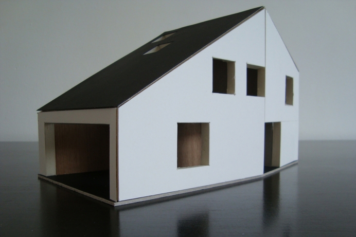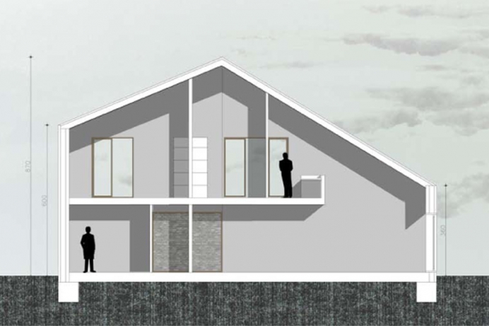 Het gekozen volume is kleiner dan het opgegeven volume, maar wel homogener en compacter. Het haalt de vertrapping uit het gabarit en maakt er één helder volume van dat veel beter aansluit bij de reeds bestaande woningen in de straat.